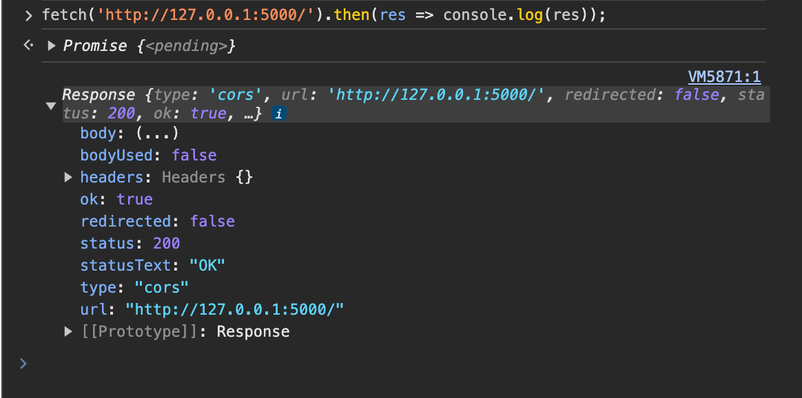 pip install flask-corsWith some modifications i.e., adding flask_cors related configuration in the code, let's try running it again.