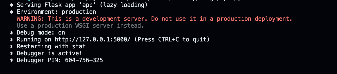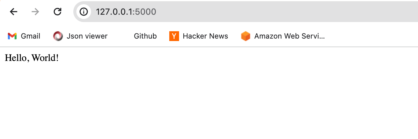 app.run(debug=True)Here we are just spinning up a flask server which returns "Hello, World!" text on the "/" route after this run the below command to start the server