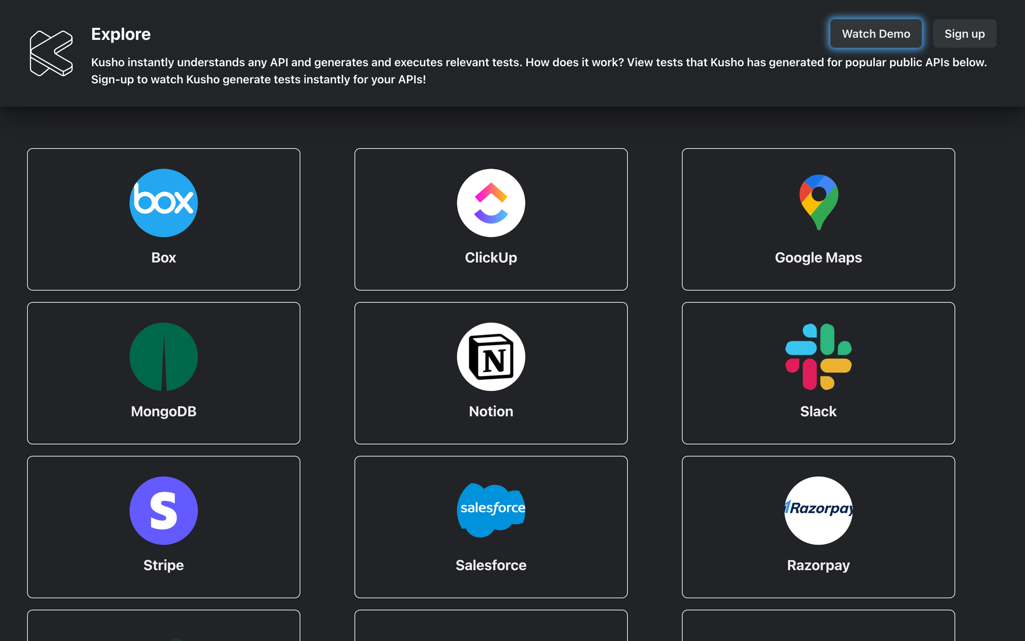 Want to test out this promise? Watch KushoAI in action on the public APIs of popular companies https://app.kusho.ai/explore